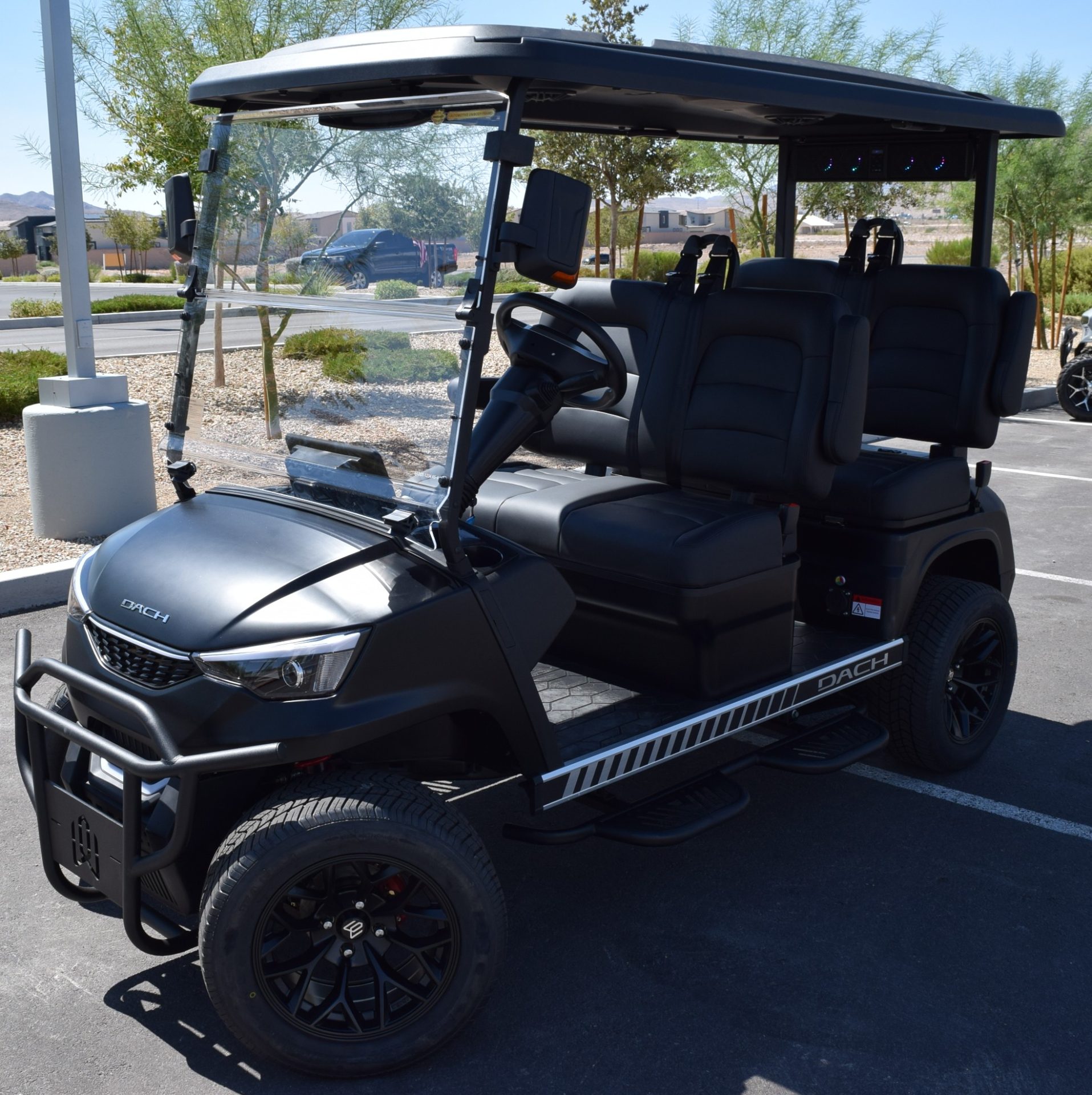 2025 DACH APOLLO! Matte Black with Black interior. This is one of the best carts for the bang! This cart is a 72v motor when most are only 48. This has longer more efficient range and is a powerhouse with extra passengers and hills. This cart comes fulllllllllly loaded. Sound Bar, Roof speakers that color change, LED color changing lights, Side steps, Brush guard, Apple car play, Keyless start with your phone. LSV street legal with a 17-digit vin number. 8 exterior colors, 4 standard interior colors and 4 upgraded interior color options with MODZ seat skins, 2-wheel options and 2 tire options. We have every color combo on order. Stop in to be one of the first to have one of these bad boys! 0% for 36 months or only 5.99% for 60 months. Trades welcome! We buy carts as well. We include a LIFETIME battery warranty with all new cart purchases SINCITYGOLFCARS.COM 702-SIN-CITY 3720 E. DALE AVE. HENDERSON, NV 89044