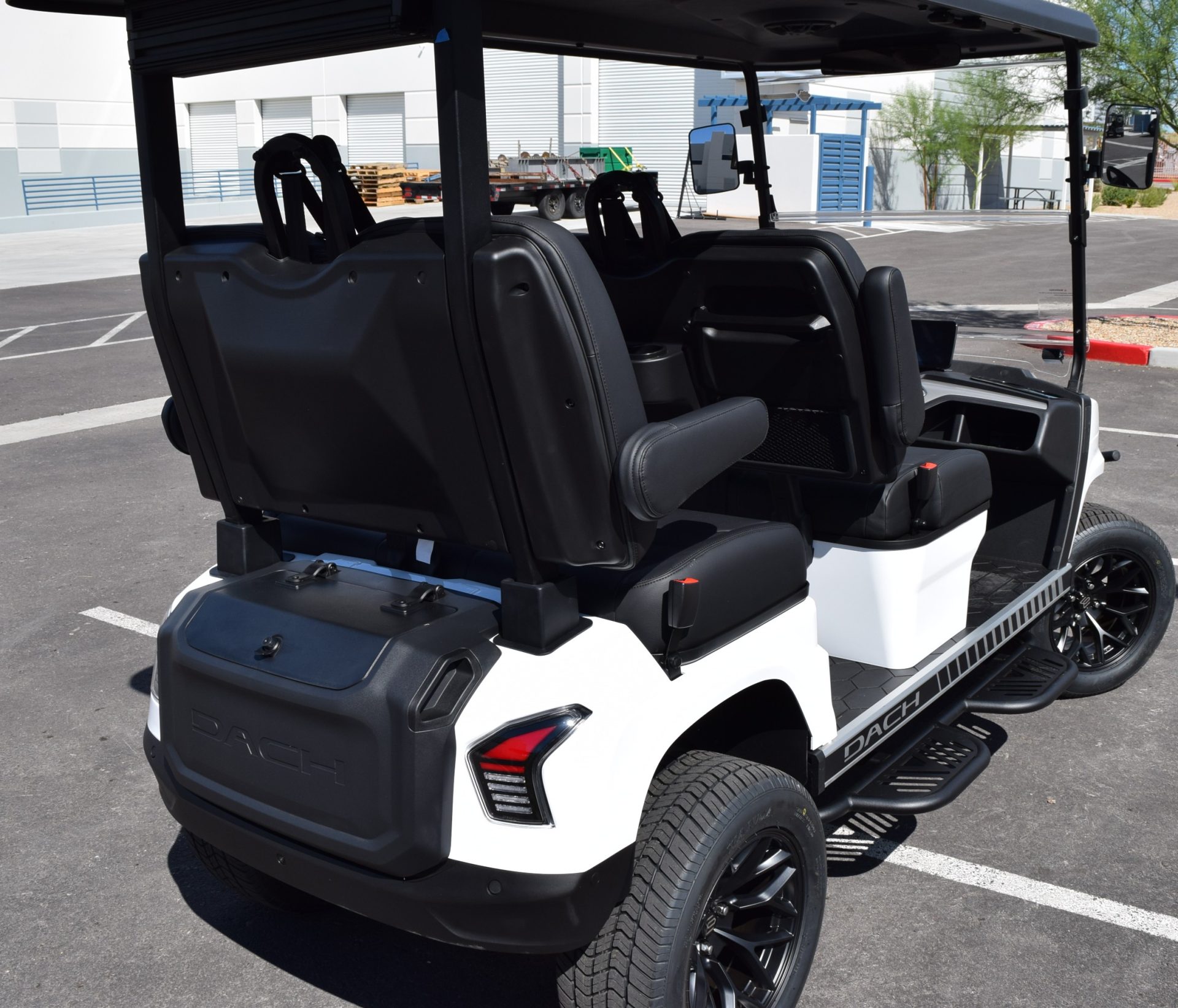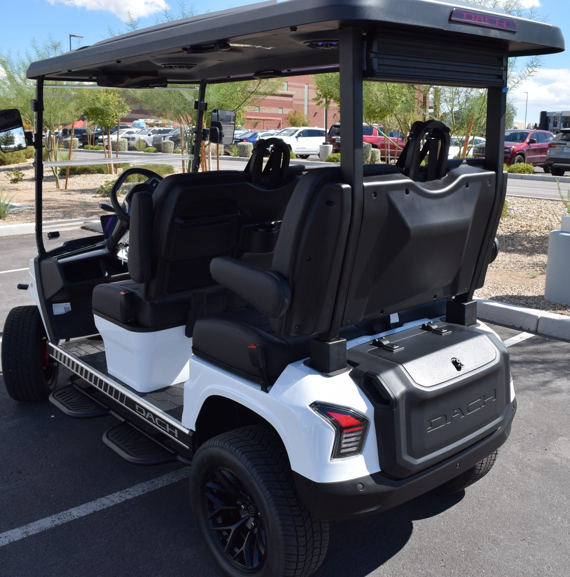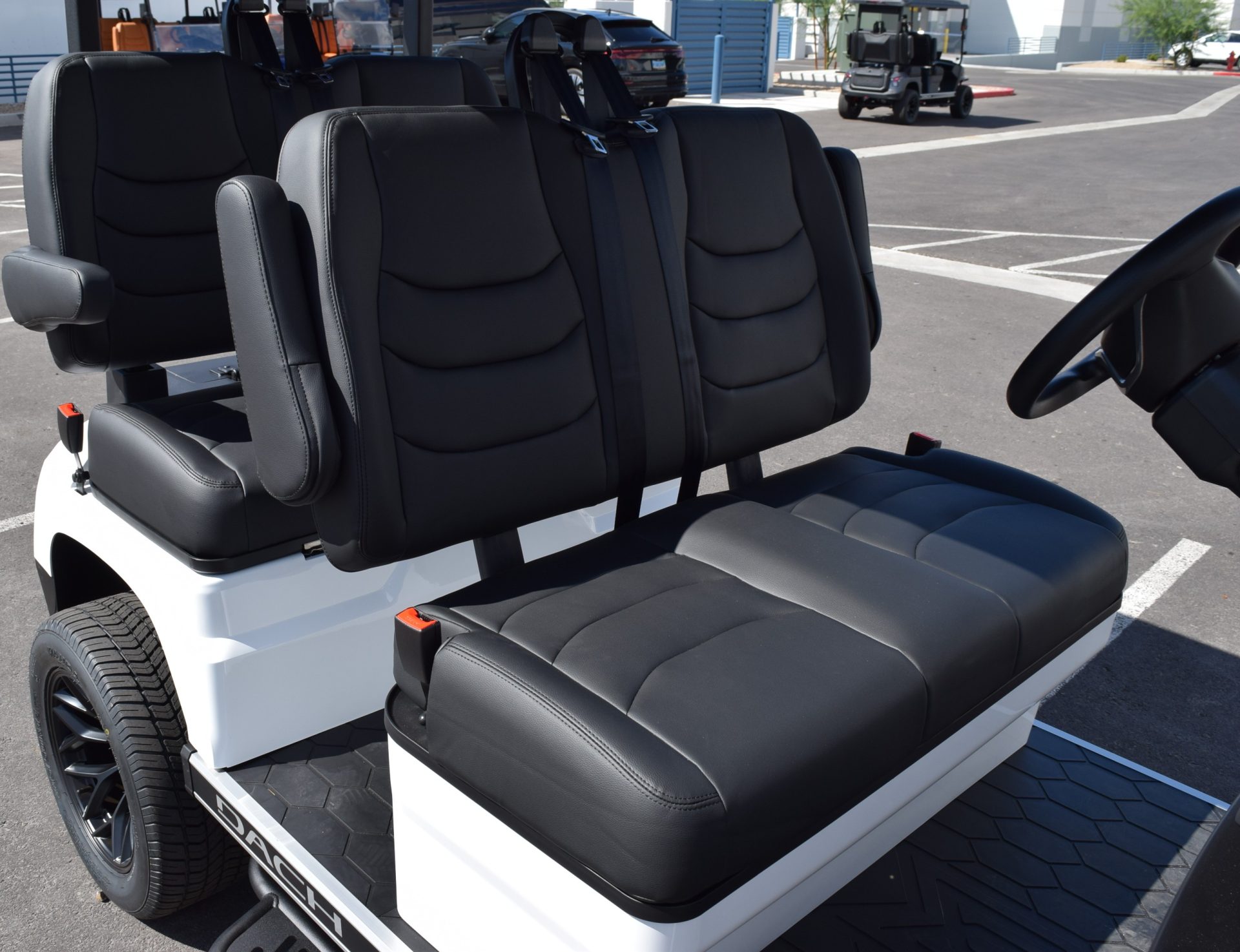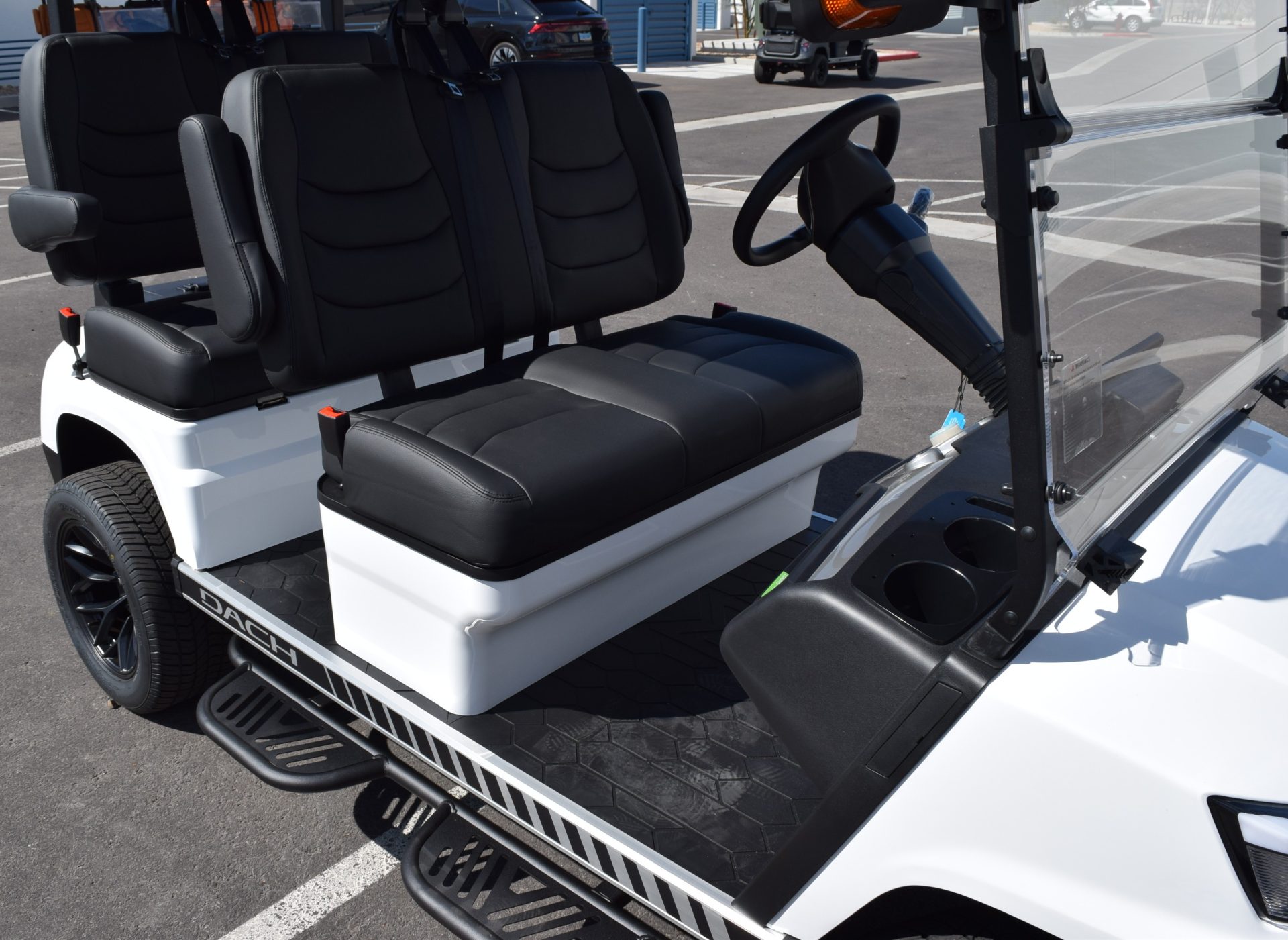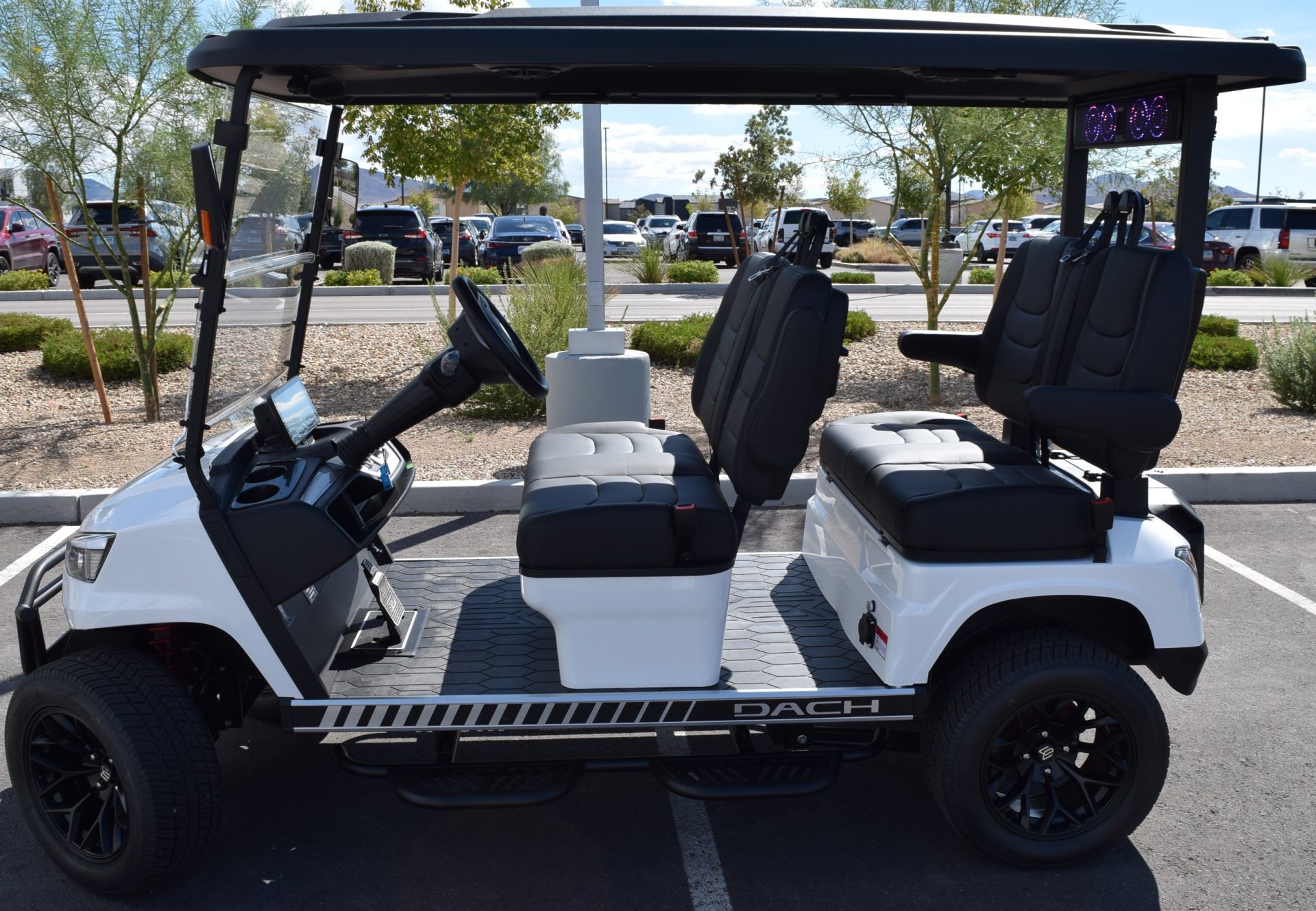 2025 DACH APOLLO! White with Black interior. This is one of the best carts for the bang! This cart is a 72v motor when most are only 48. This has longer more efficient range and is a powerhouse with extra passengers and hills. This cart comes fulllllllllly loaded. Sound Bar, Roof speakers that color change, LED color changing lights, Side steps, Brush guard, Apple car play, Keyless start with your phone. LSV street legal with a 17-digit vin number. 8 exterior colors, 4 standard interior colors and 4 upgraded interior color options with MODZ seat skins, 2-wheel options and 2 tire options. We have every color combo on order. Stop in to be one of the first to have one of these bad boys! 0% for 36 months or only 5.99% for 60 months. Trades welcome! We buy carts as well. We include a LIFETIME battery warranty with all new cart purchases SINCITYGOLFCARS.COM 702-SIN-CITY 3720 E. DALE AVE. HENDERSON, NV 89044