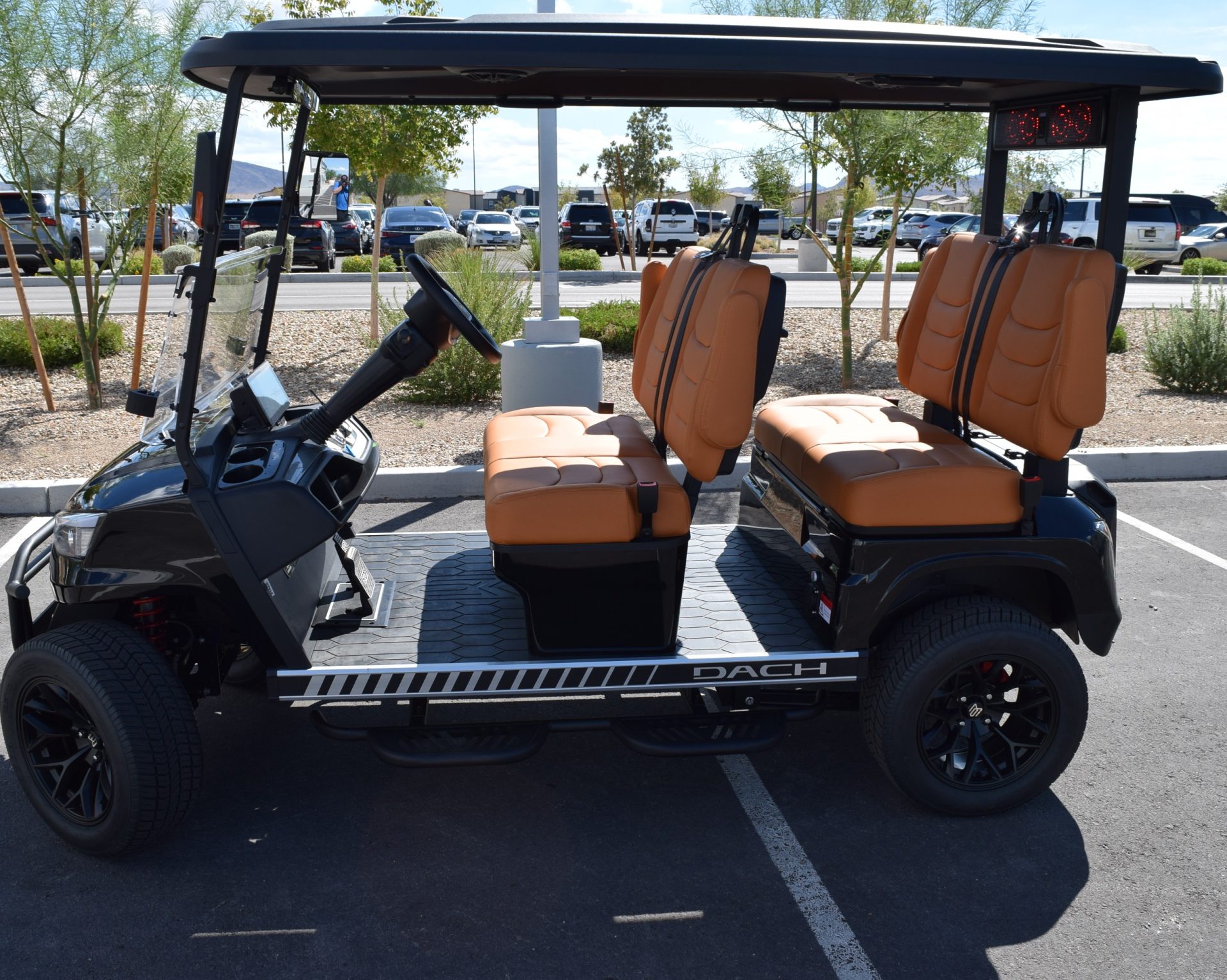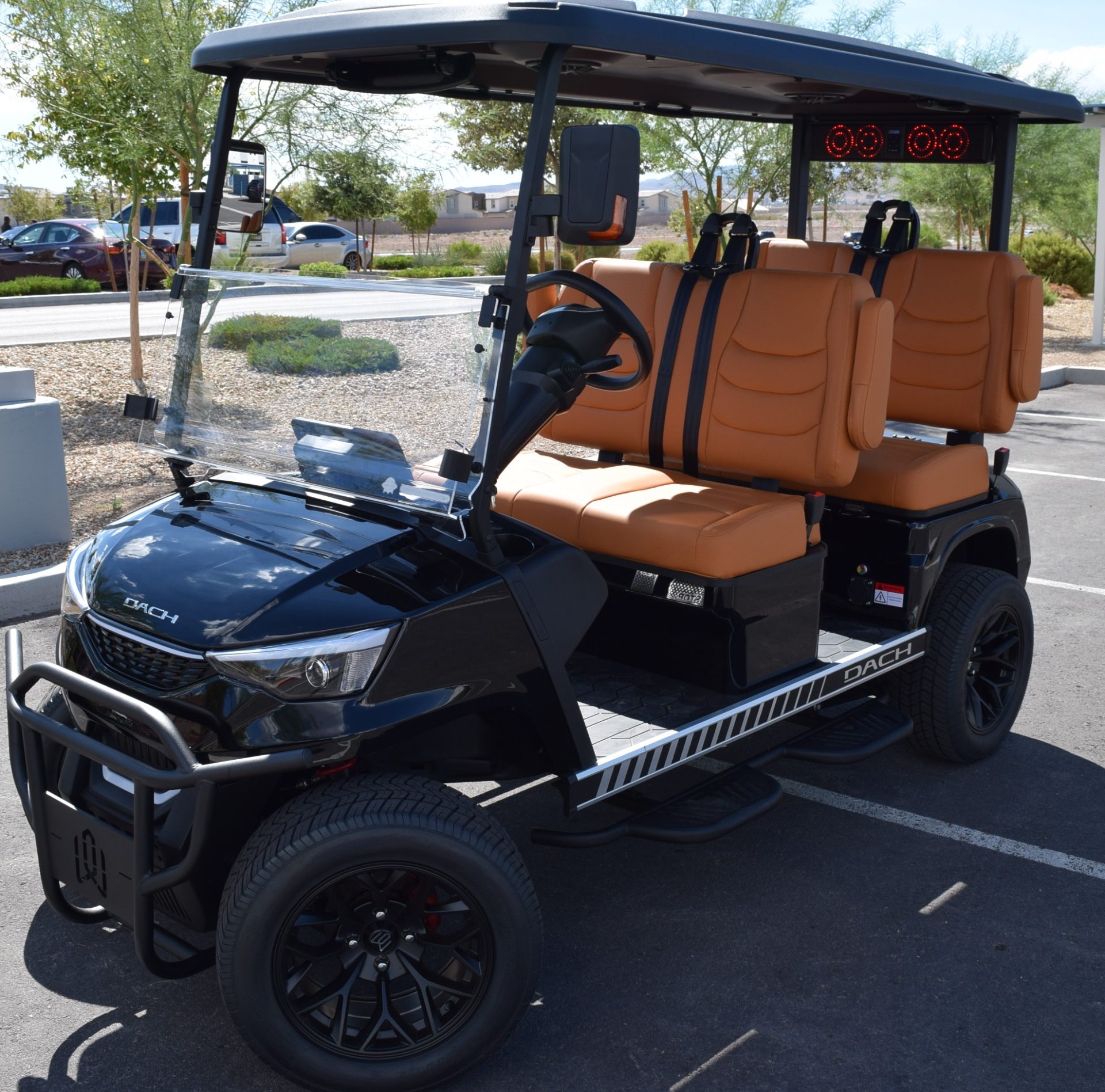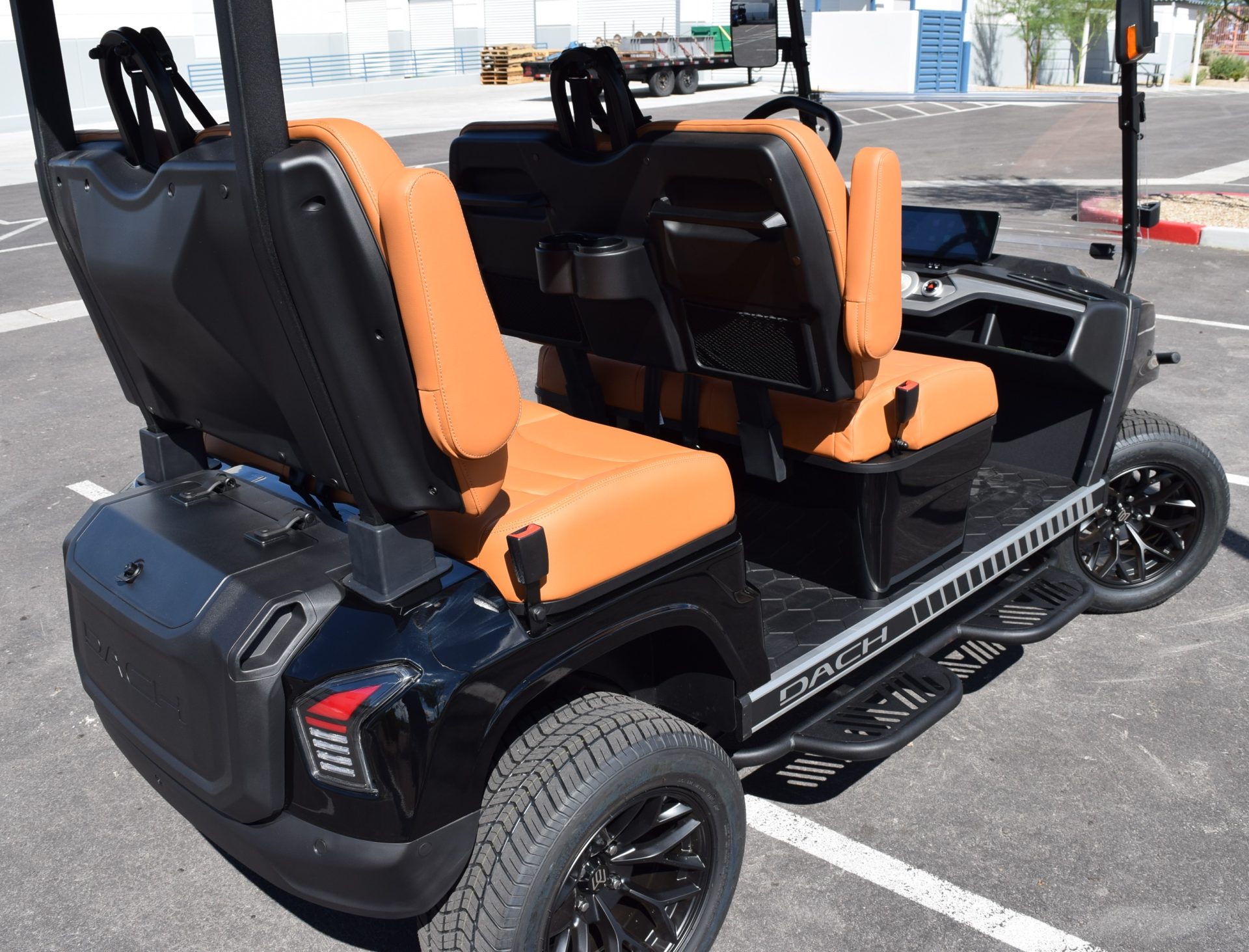 2025 DACH APOLLO! Black with Caramel interior. This is one of the best carts for the bang! This cart is a 72v motor when most are only 48. This has longer more efficient range and is a powerhouse with extra passengers and hills. This cart comes fulllllllllly loaded. Sound Bar, Roof speakers that color change, LED color changing lights, Side steps, Brush guard, Apple car play, Keyless start with your phone. LSV street legal with a 17-digit vin number. 8 exterior colors, 4 standard interior colors and 4 upgraded interior color options with MODZ seat skins, 2-wheel options and 2 tire options. We have every color combo on order. Stop in to be one of the first to have one of these bad boys! 0% for 36 months or only 5.99% for 60 months. Trades welcome! We buy carts as well. We include a LIFETIME battery warranty with all new cart purchases SINCITYGOLFCARS.COM 702-SIN-CITY 3720 E. DALE AVE. HENDERSON, NV 89044