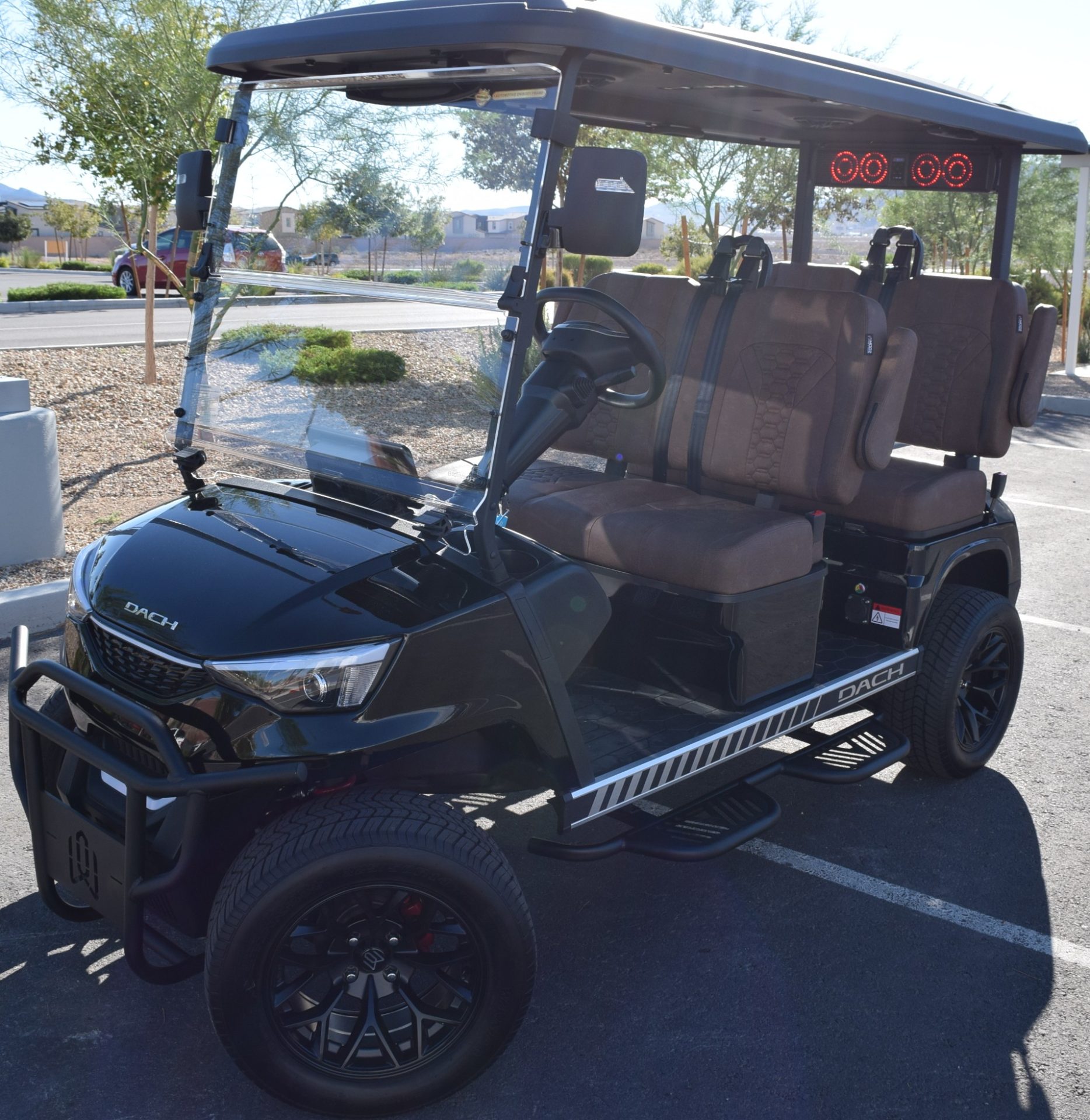 2025 DACH APOLLO! Black with Brown Modz interior. This is one of the best carts for the bang! This cart is a 72v motor when most are only 48. This has longer more efficient range and is a powerhouse with extra passengers and hills. This cart comes fulllllllllly loaded. Sound Bar, Roof speakers that color change, LED color changing lights, Side steps, Brush guard, Apple car play, Keyless start with your phone. LSV street legal with a 17-digit vin number. 8 exterior colors, 4 standard interior colors and 4 upgraded interior color options with MODZ seat skins, 2-wheel options and 2 tire options. We have every color combo on order. Stop in to be one of the first to have one of these bad boys! 0% for 36 months or only 5.99% for 60 months. Trades welcome! We buy carts as well. We include a LIFETIME battery warranty with all new cart purchases SINCITYGOLFCARS.COM 702-SIN-CITY 3720 E. DALE AVE. HENDERSON, NV 89044