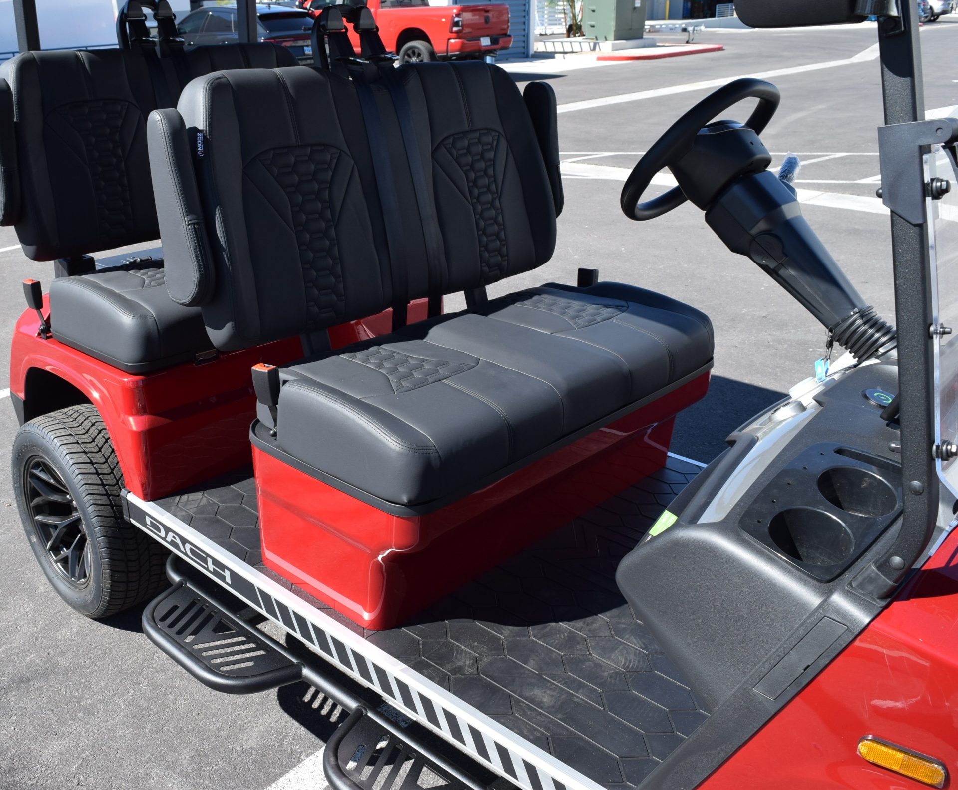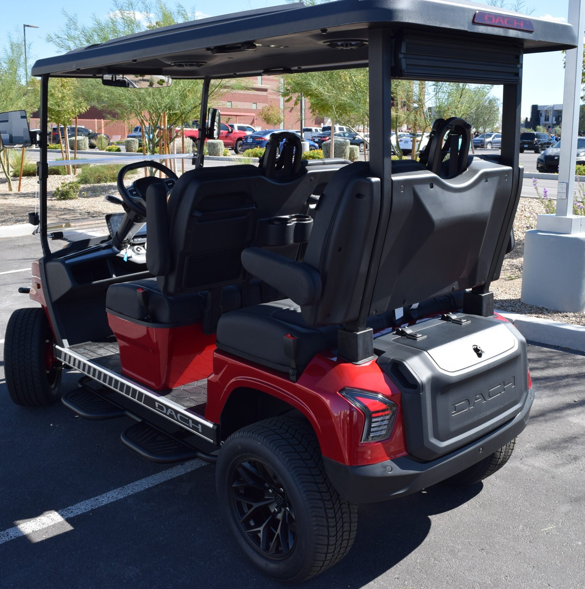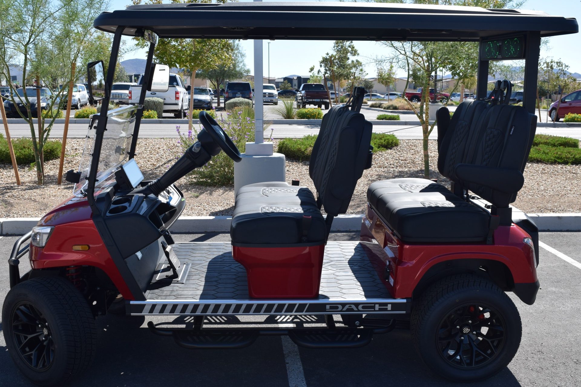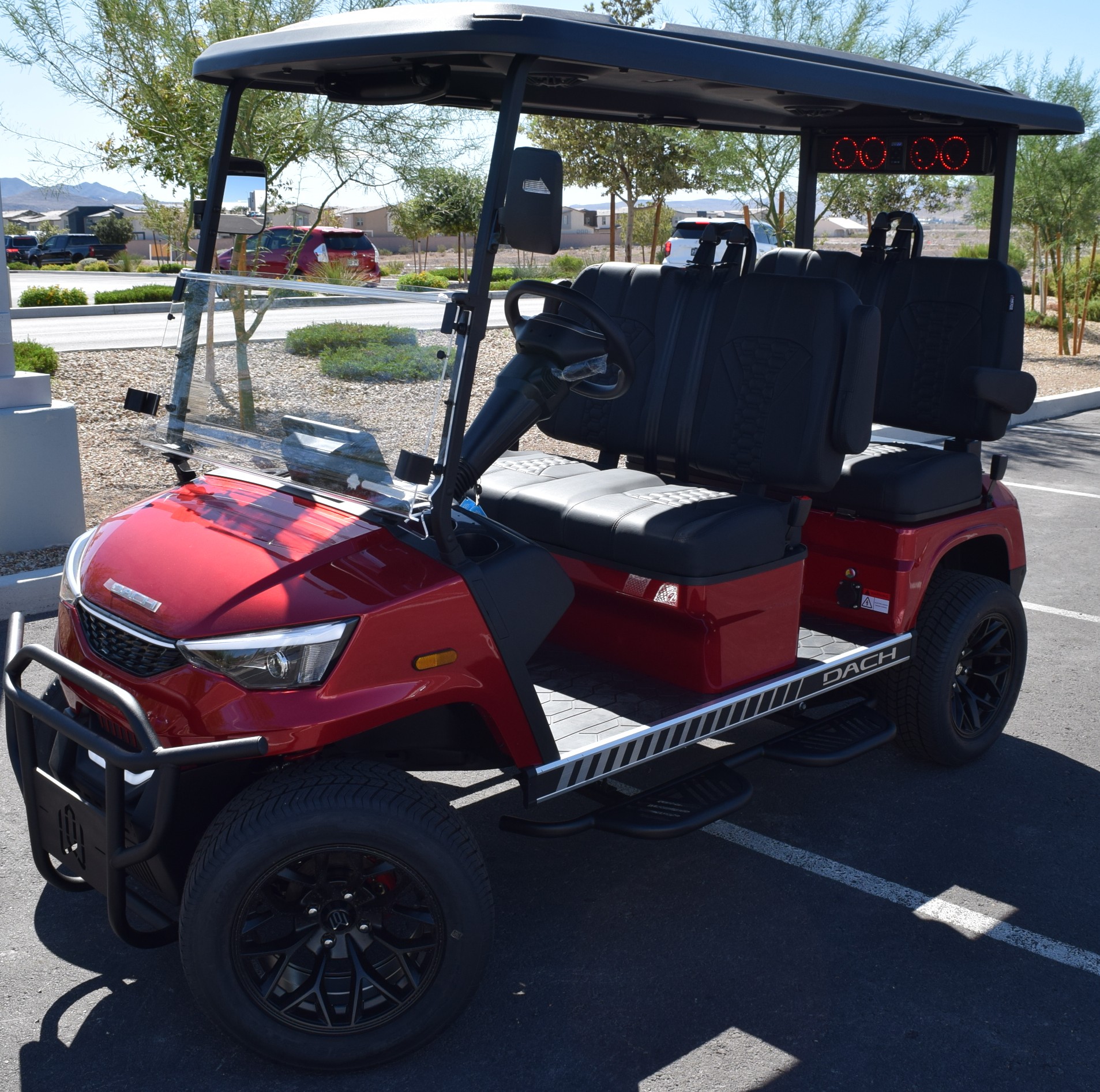 2025 DACH APOLLO! Red with Black Modz interior. This is one of the best carts for the bang! This cart is a 72v motor when most are only 48. This has longer more efficient range and is a powerhouse with extra passengers and hills. This cart comes fulllllllllly loaded. Sound Bar, Roof speakers that color change, LED color changing lights, Side steps, Brush guard, Apple car play, Keyless start with your phone. LSV street legal with a 17-digit vin number. 8 exterior colors, 4 standard interior colors and 4 upgraded interior color options with MODZ seat skins, 2-wheel options and 2 tire options. We have every color combo on order. Stop in to be one of the first to have one of these bad boys! 0% for 36 months or only 5.99% for 60 months. Trades welcome! We buy carts as well. We include a LIFETIME battery warranty with all new cart purchases SINCITYGOLFCARS.COM 702-SIN-CITY 3720 E. DALE AVE. HENDERSON, NV 89044