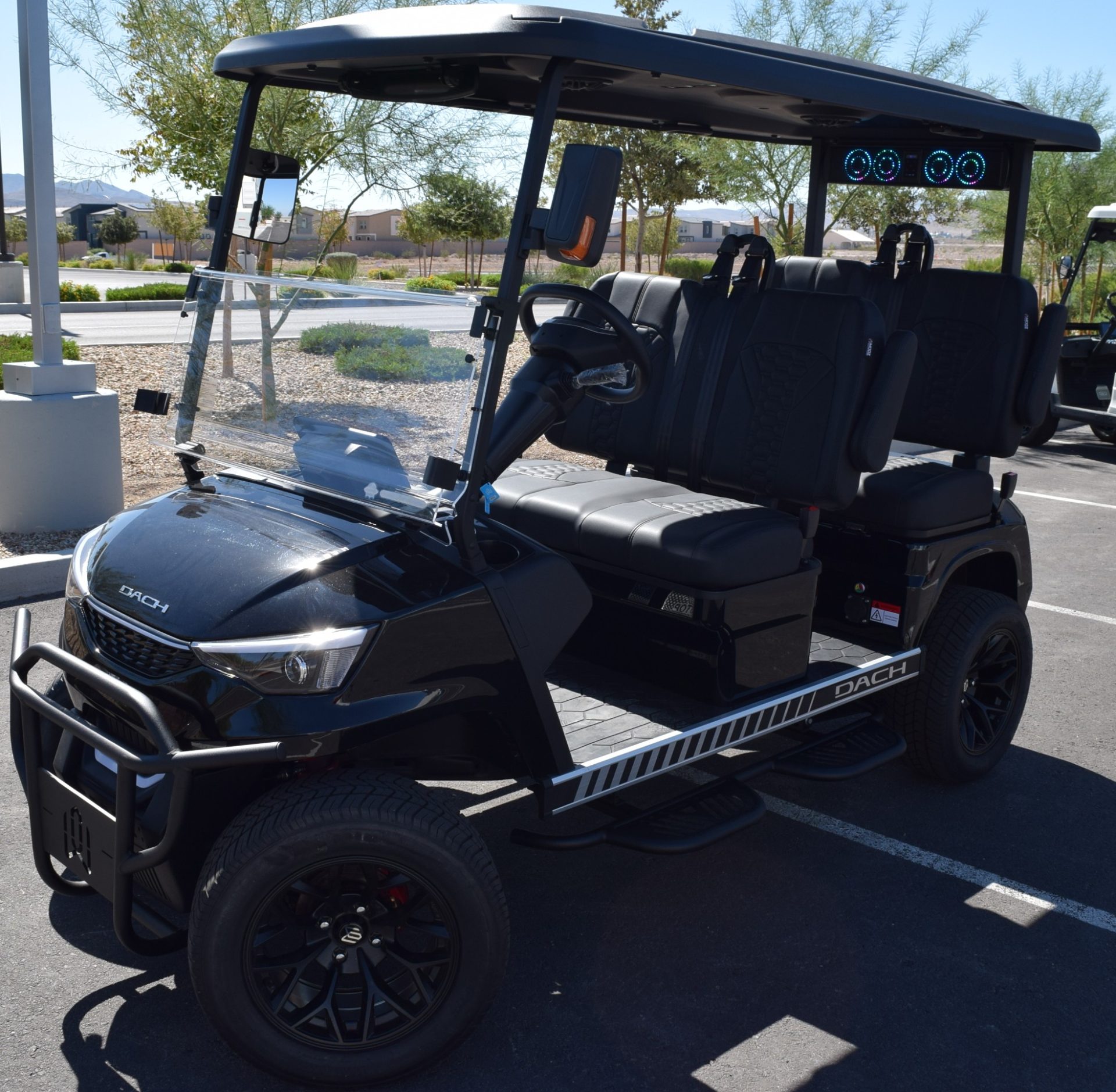 2025 DACH APOLLO! Black with Black Modz interior. This is one of the best carts for the bang! This cart is a 72v motor when most are only 48. This has longer more efficient range and is a powerhouse with extra passengers and hills. This cart comes fulllllllllly loaded. Sound Bar, Roof speakers that color change, LED color changing lights, Side steps, Brush guard, Apple car play, Keyless start with your phone. LSV street legal with a 17-digit vin number. 8 exterior colors, 4 standard interior colors and 4 upgraded interior color options with MODZ seat skins, 2-wheel options and 2 tire options. We have every color combo on order. Stop in to be one of the first to have one of these bad boys! 0% for 36 months or only 5.99% for 60 months. Trades welcome! We buy carts as well. We include a LIFETIME battery warranty with all new cart purchases SINCITYGOLFCARS.COM 702-SIN-CITY 3720 E. DALE AVE. HENDERSON, NV 89044