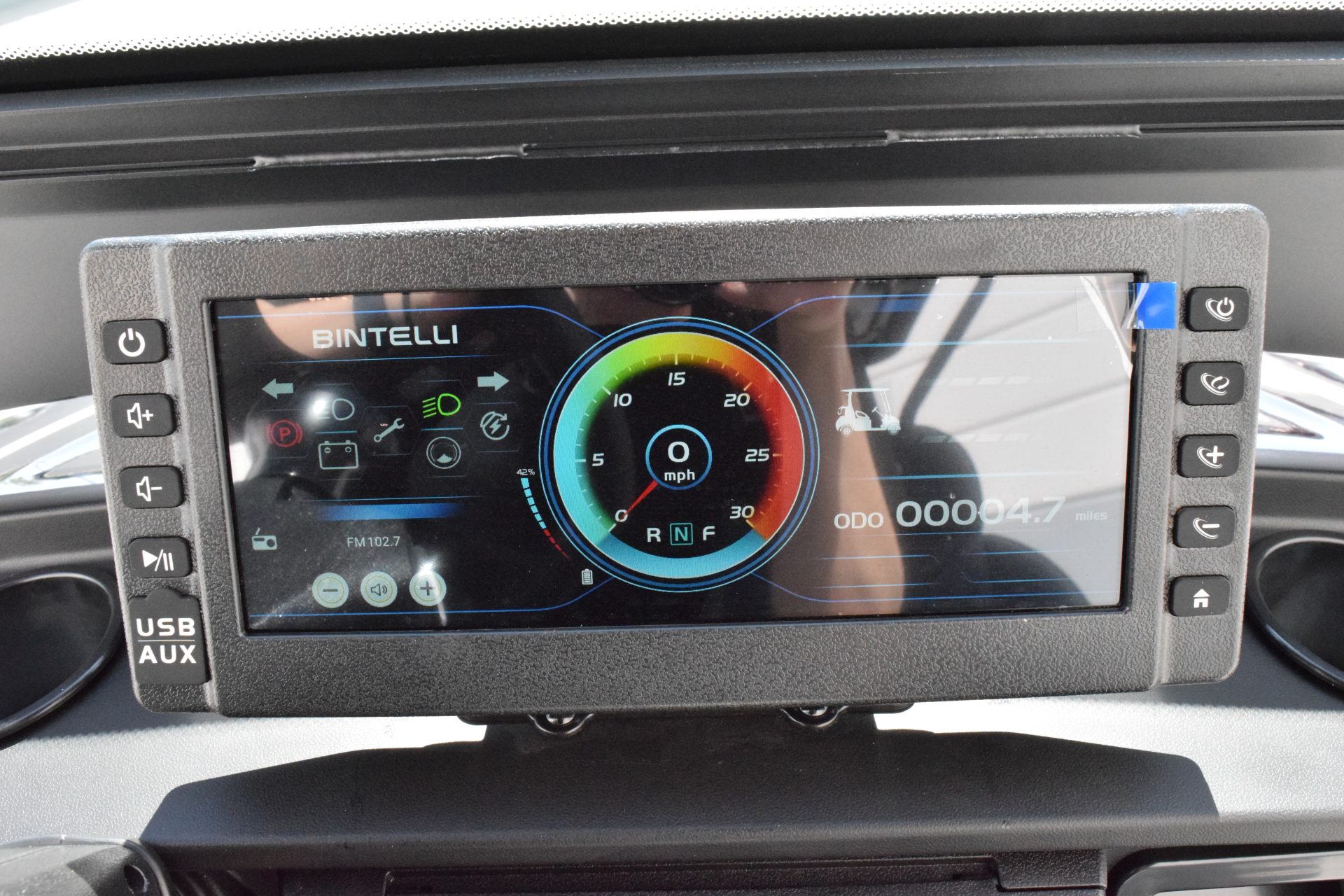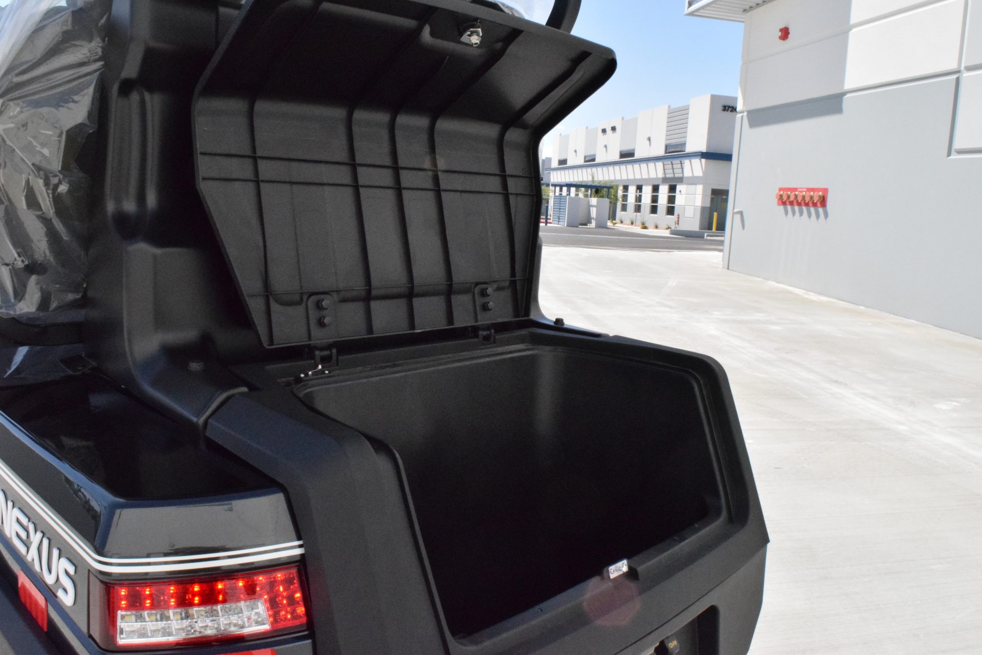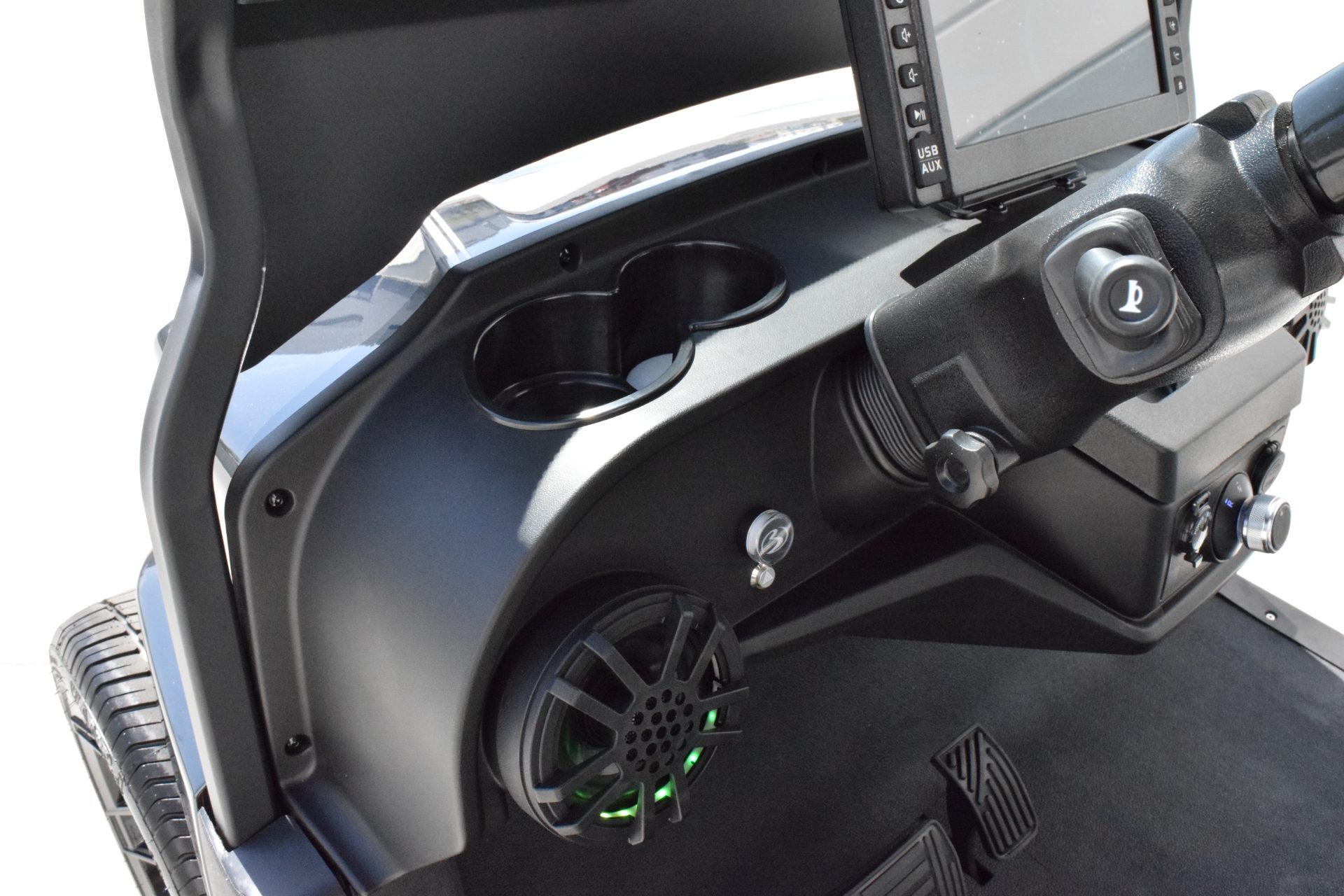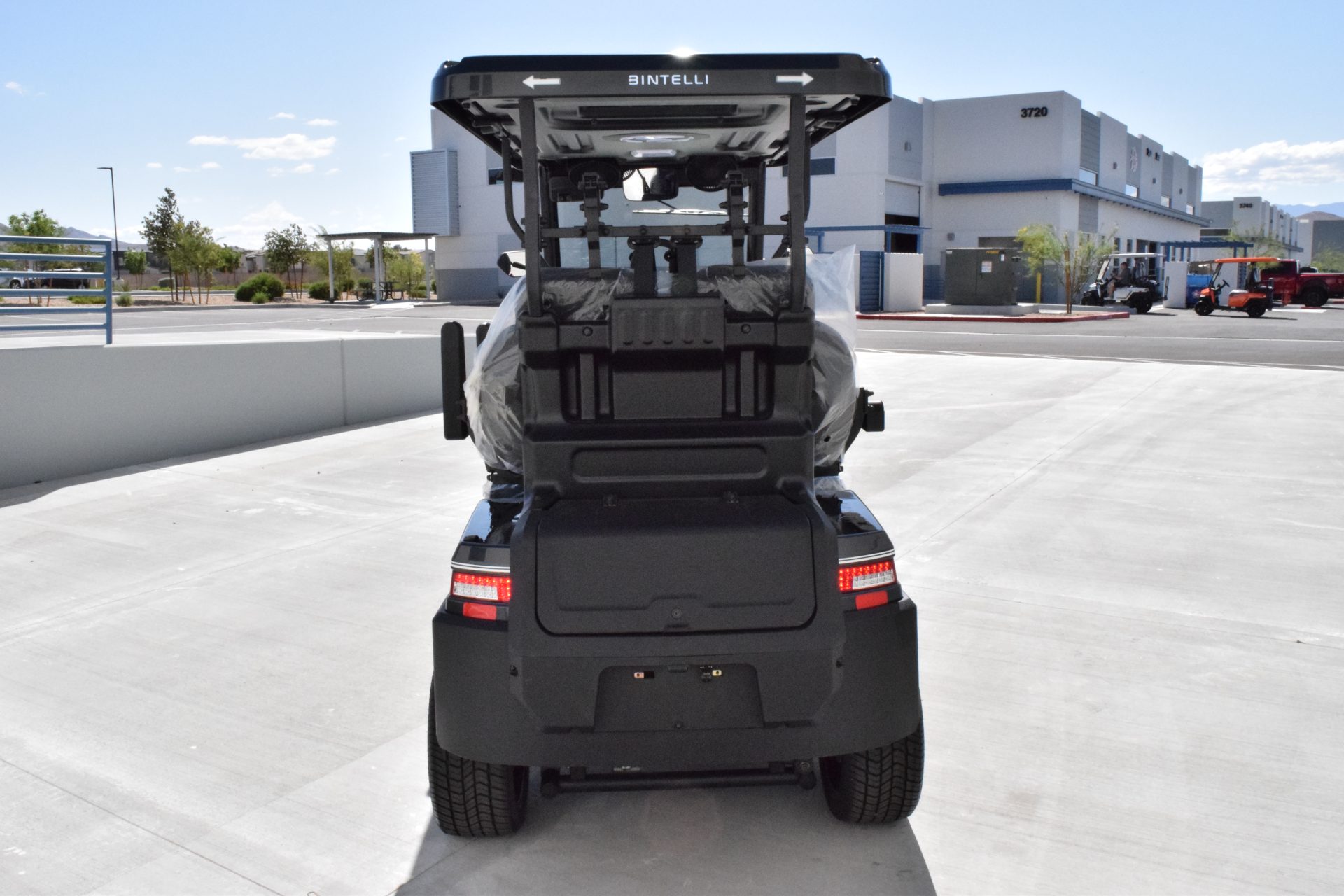 The Nexus is powered by a range-extended 72v drive system and is packed with more standard features than any other cart at its price point. Complete with a 13″ high-res infotainment center, roof-mounted fans, lights, and speakers, a beach chair holder, LED accent lighting, and lockable storage. The Gen2 adds power steering, adjustable camber, color-changing under mounted lights, push-button start, and so much more… be prepared to be the talk of your neighborhood with the all-new Bintelli Nexus!