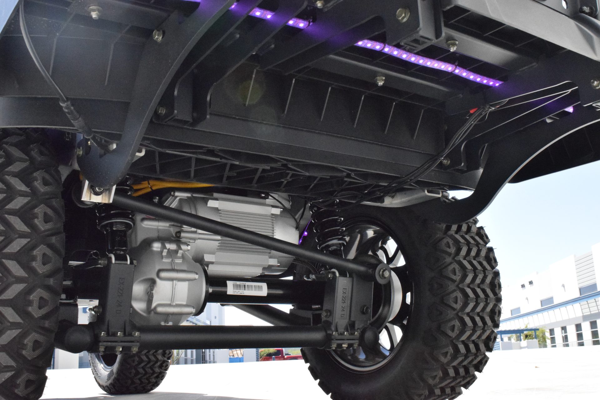The Nexus is powered by a range-extended 72v drive system and is packed with more standard features than any other cart in its price point. Complete with a 13″ high-res infotainment center, roof-mounted fans, lights, and speakers, a beach chair holder, LED accent lighting, lockable storage and so much more… be prepared to be the talk of your neighborhood with the Bintelli Nexus!