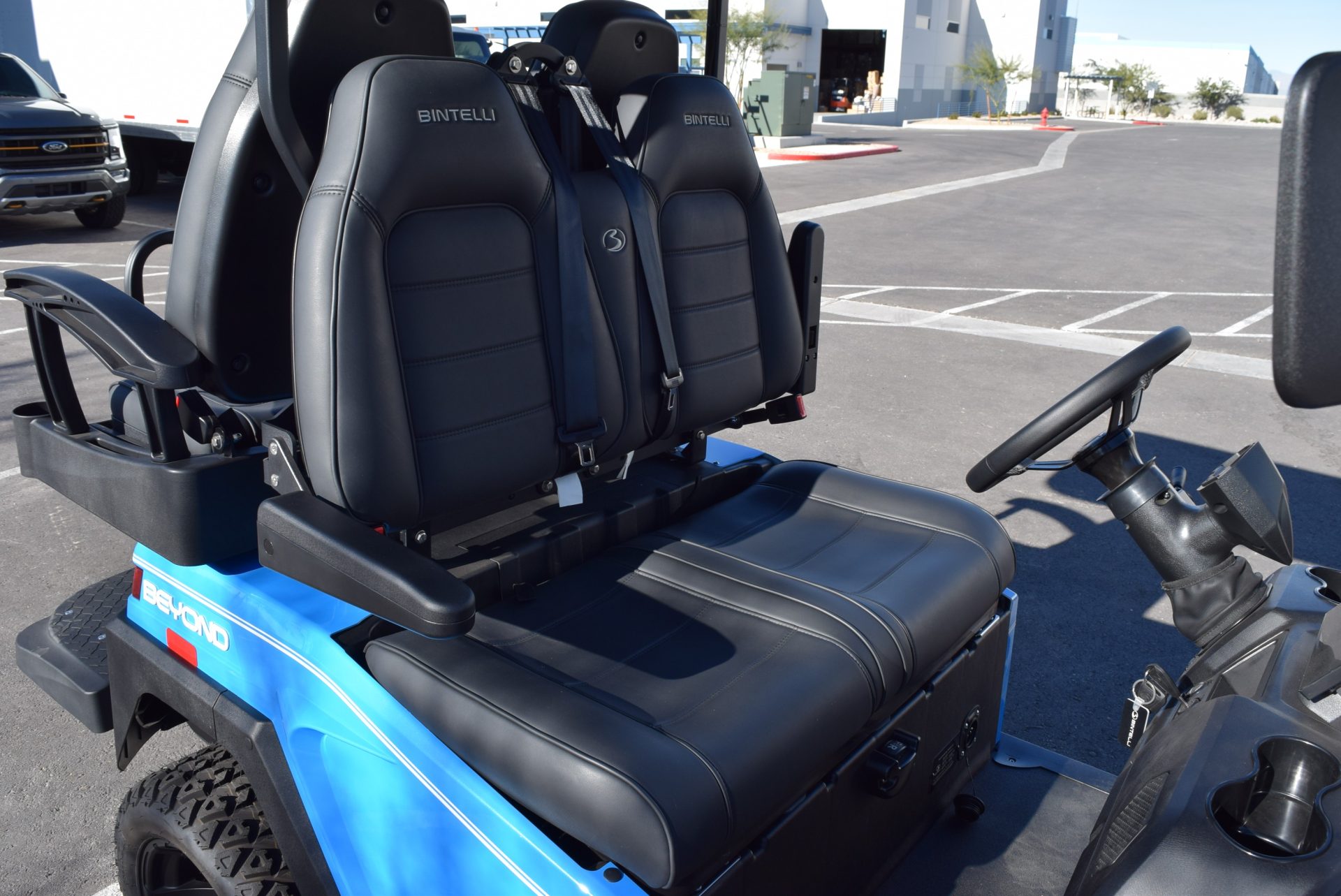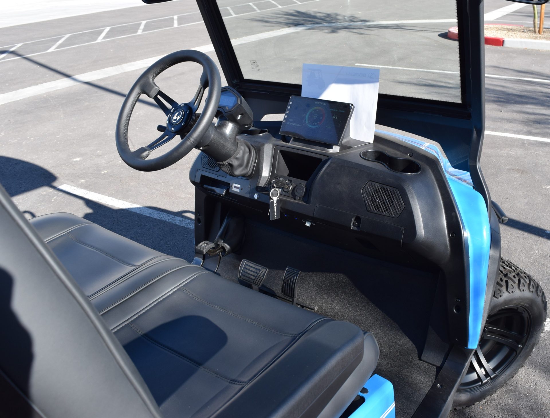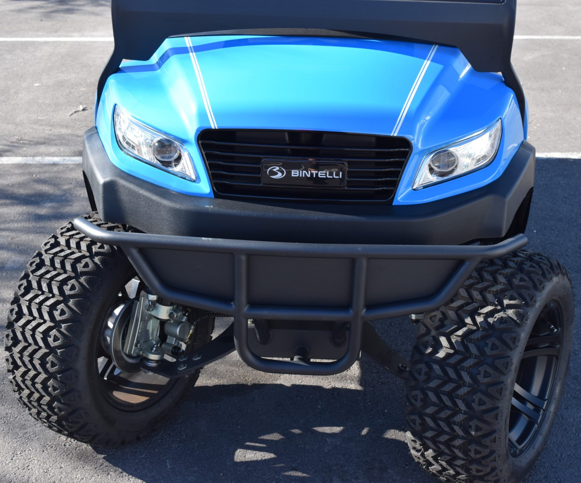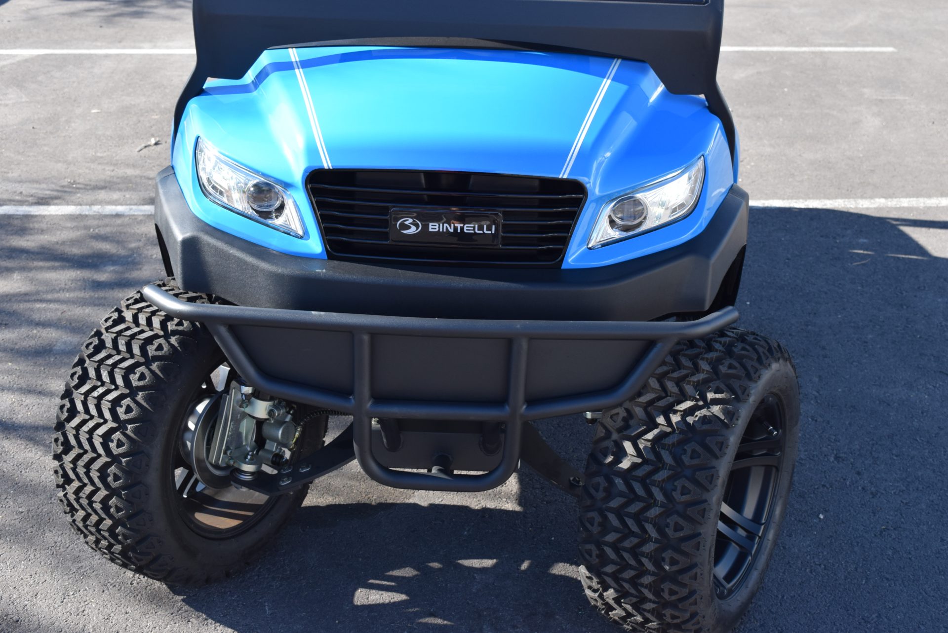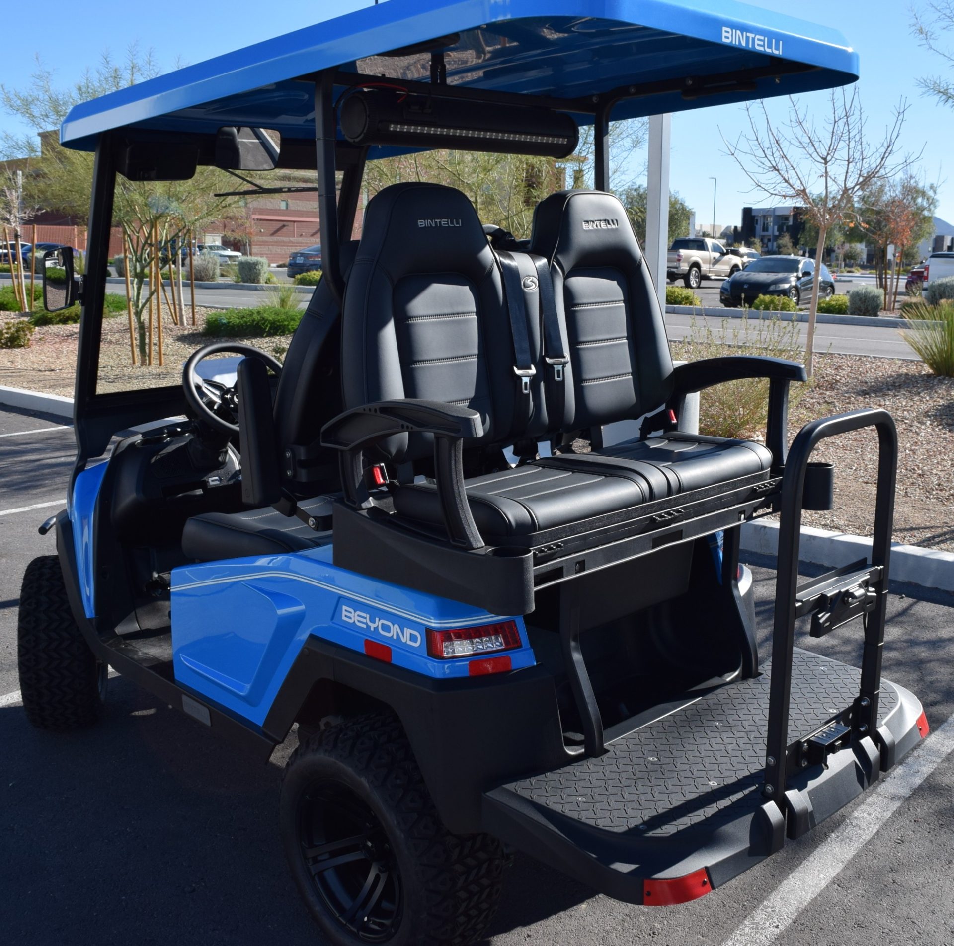 2026 Bintelli Beyond 4p Lifted Street legal golf cart in Ocean Blue with Black interior. Bintelli is an award-winning brand of golf carts and LSVs.