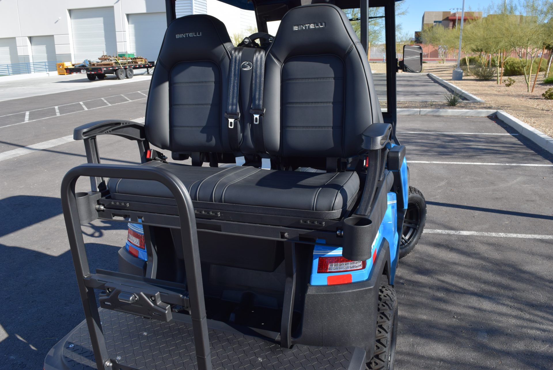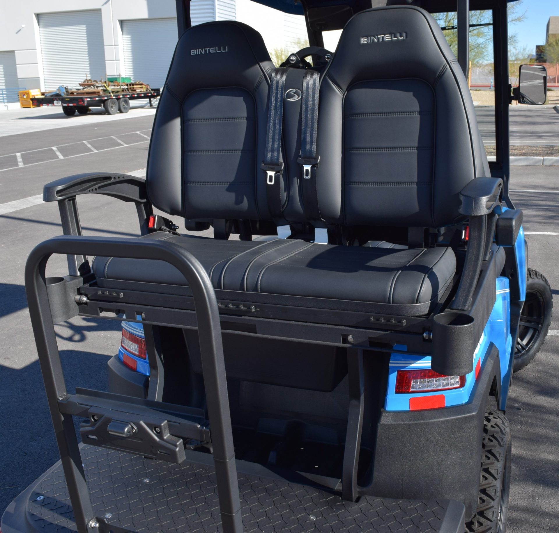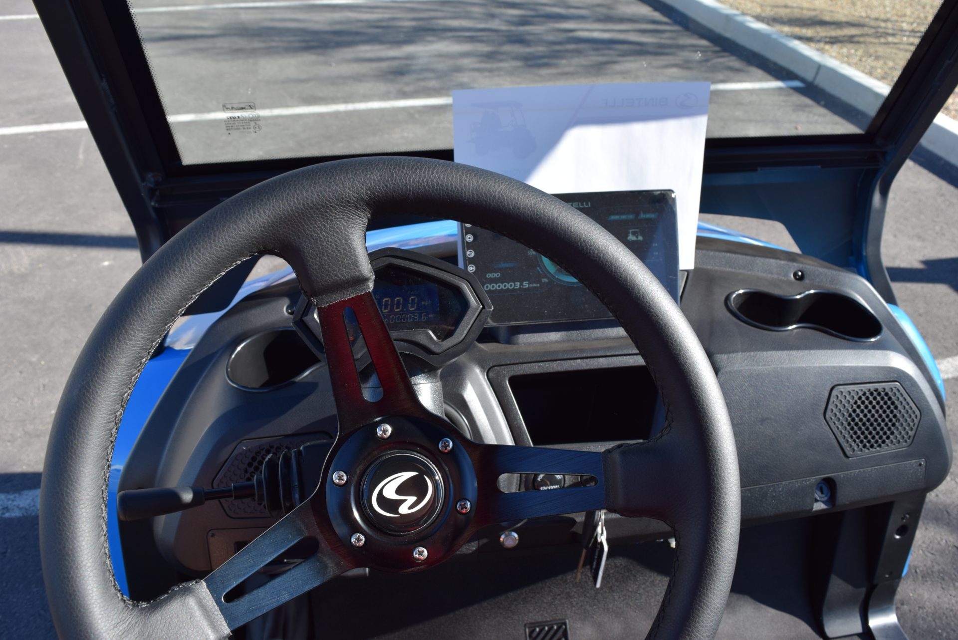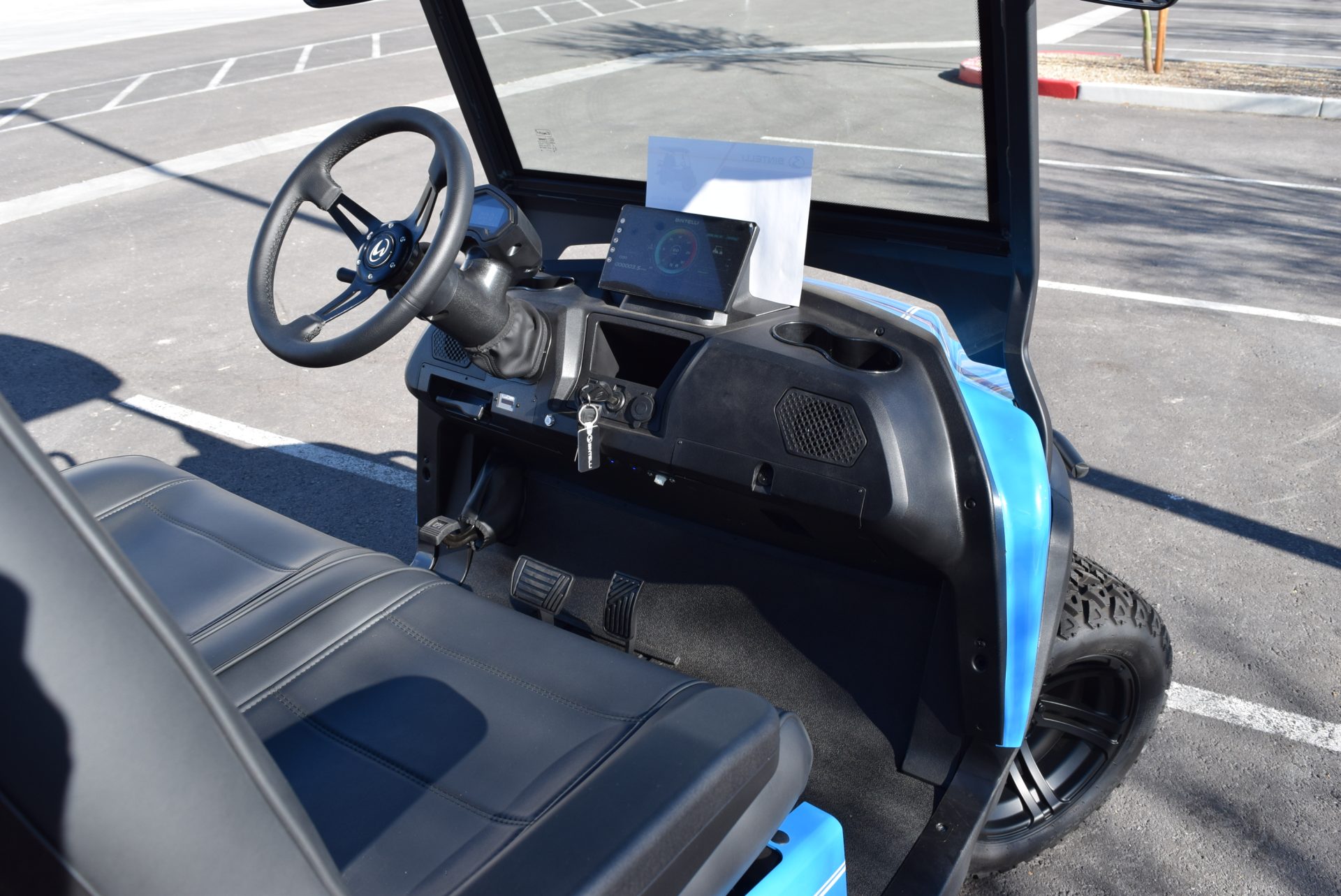 2026 Bintelli Beyond 4p Lifted Street legal golf cart in Ocean Blue with Black interior. Bintelli is an award-winning brand of golf carts and LSVs.