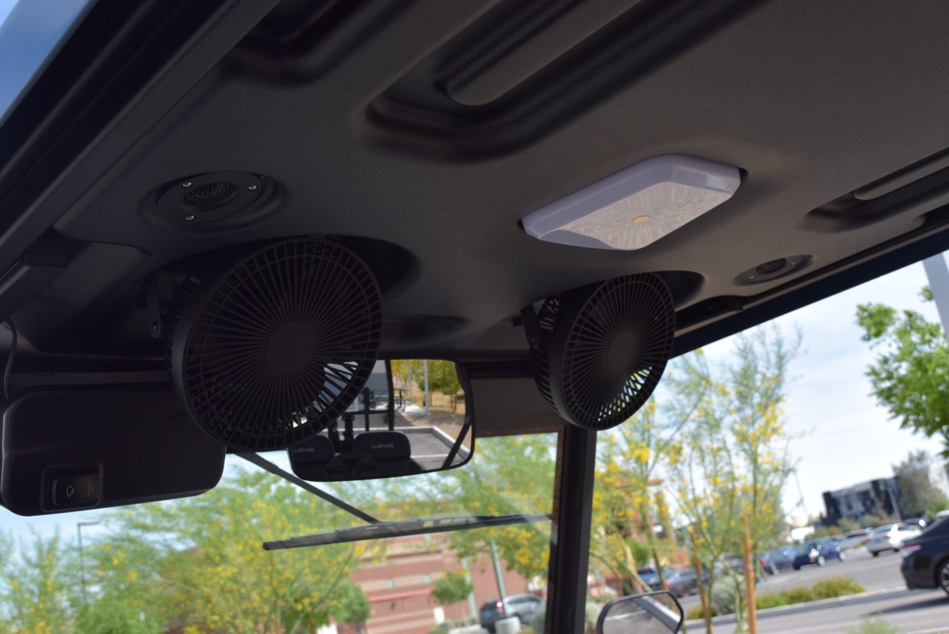 It comes fully loaded with premium features, including ceiling fans, full color-changing LED lighting, an 8-speaker sound system, keyless go, Apple CarPlay and Android Auto, side steps, a brush guard, and a DOT-approved glass windshield with wiper—plus much more.