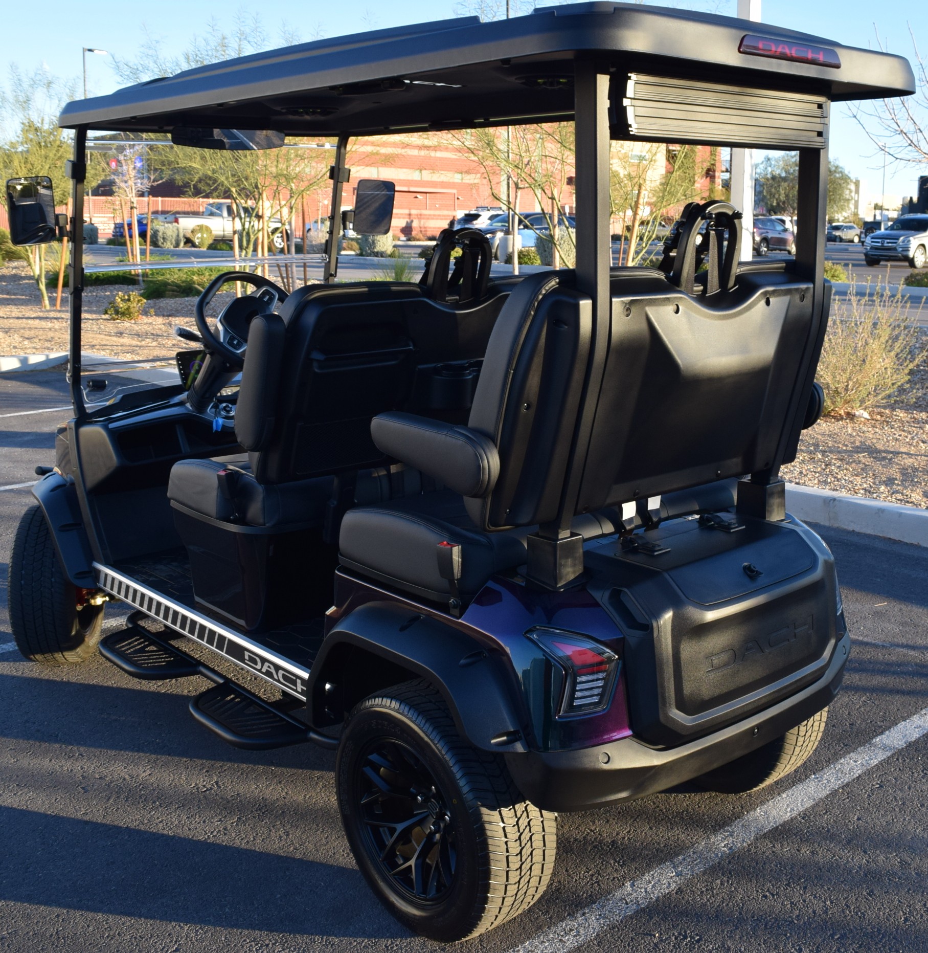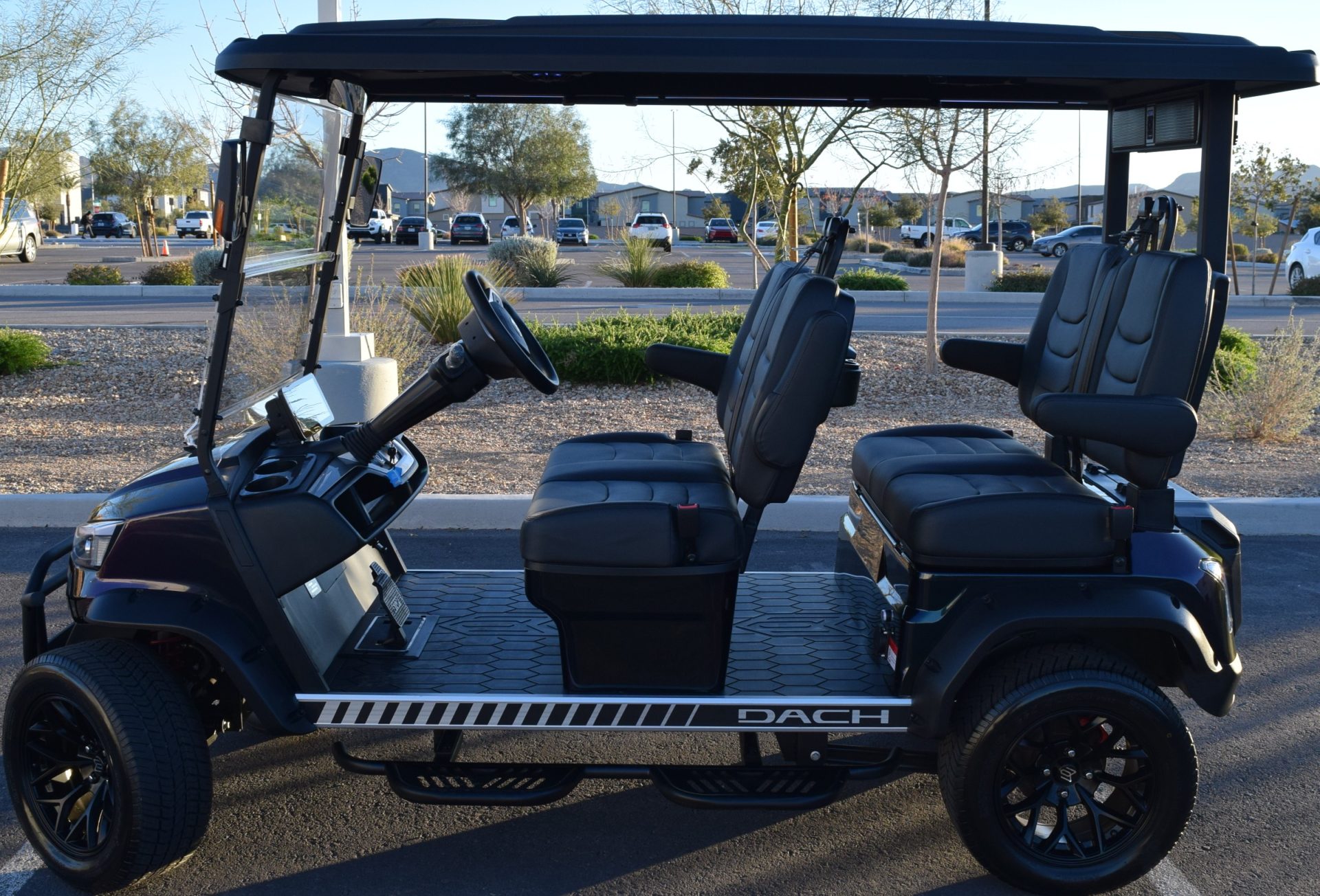 2026 Dach Apollo Chameleon with Black Interior. This is one of the best built carts around! This cart is a 72v motor when most are only 48. This has longer more efficient range and is a powerhouse with extra passengers and hills. This cart comes fulllllllllly loaded. Sound Bar, Roof speakers that color change, LED color changing lights, Side steps, Brush guard, Apple car play, Keyless start with your phone. LSV street legal with a 17-digit vin number. 8 exterior colors, 4 standard interior colors and 4 upgraded interior color options with MODZ seat skins, 2-wheel options and 2 tire options. We have every color combo on order. Stop in to be one of the first to have one of these bad boys! 0% for 36 months or only 5.99% for 60 months. Trades welcome! We buy carts as well. We include a LIFETIME battery warranty with all new cart purchases SINCITYGOLFCARS.COM 702-SIN-CITY 3720 E. DALE AVE. HENDERSON, NV 89044