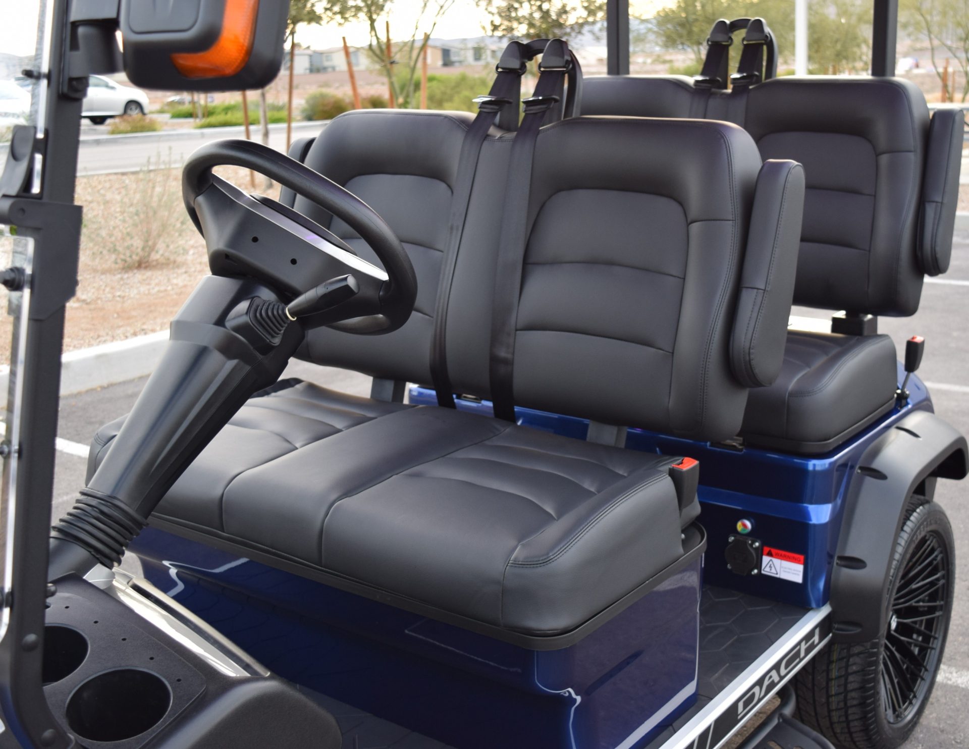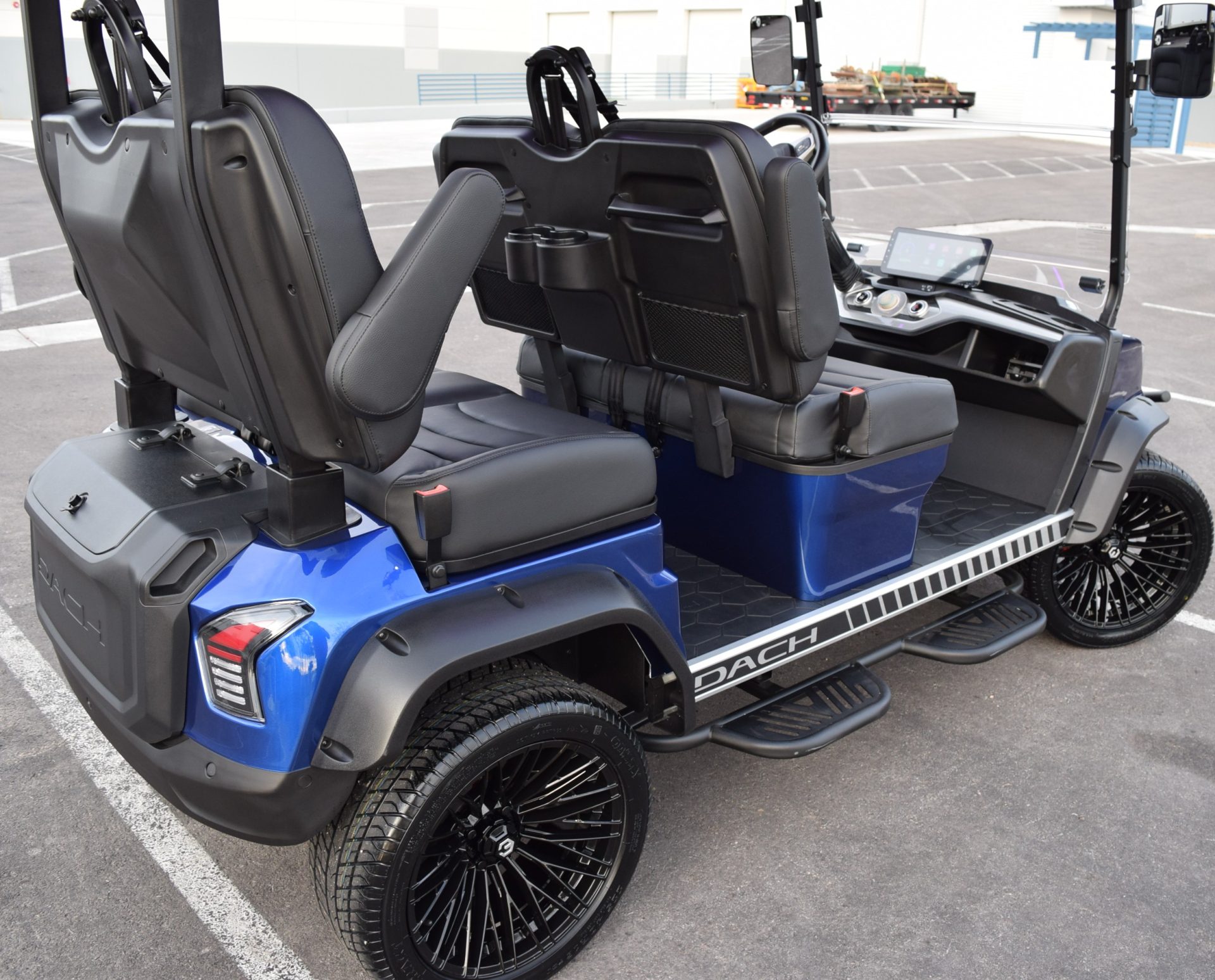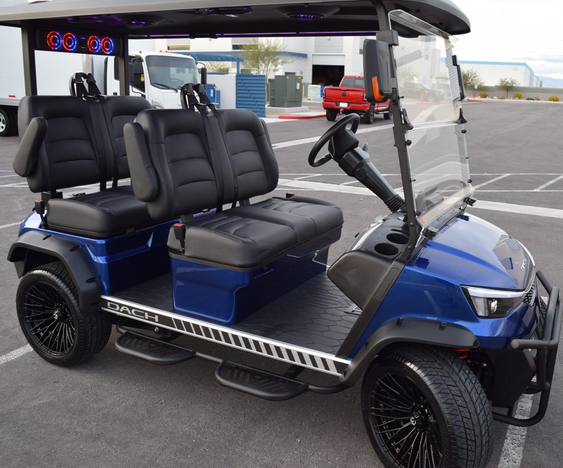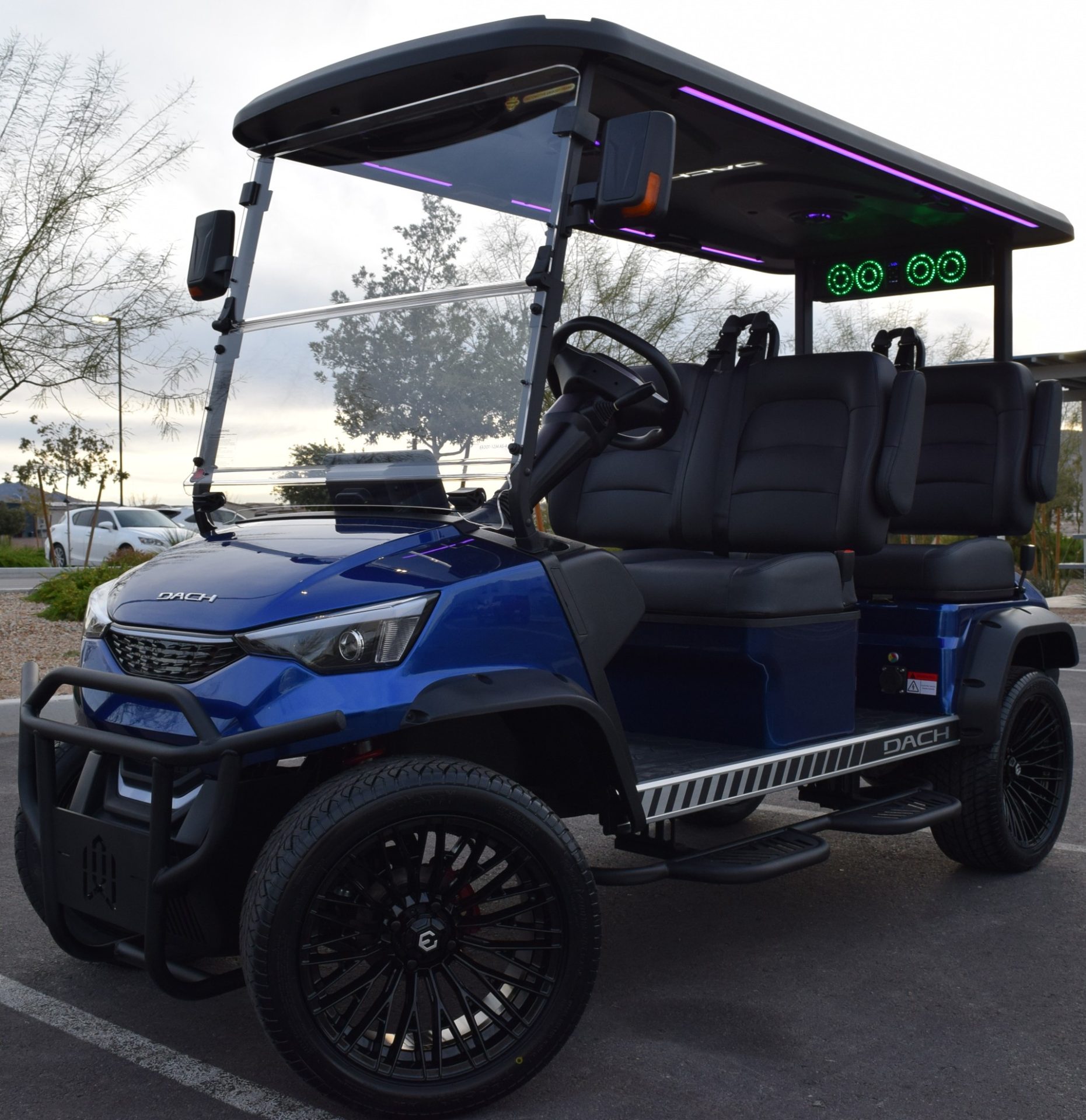 2026 Dach Apollo Custom! Blue with Black Interior, Modz Reaper 16 in gloss black wheels and 16-inch tires! This is one of the best built carts around! This cart is a 72v motor when most are only 48. This has longer more efficient range and is a powerhouse with extra passengers and hills. This cart comes fulllllllllly loaded. Sound Bar, Roof speakers that color change, LED color changing lights, Side steps, Brush guard, Apple car play, Keyless start with your phone. LSV street legal with a 17-digit vin number. 8 exterior colors, 4 standard interior colors and 4 upgraded interior color options with MODZ seat skins, 2-wheel options and 2 tire options. We have every color combo on order. Stop in to be one of the first to have one of these bad boys! 0% for 36 months or only 5.99% for 60 months. Trades welcome! We buy carts as well. We include a LIFETIME battery warranty with all new cart purchases SINCITYGOLFCARS.COM 702-SIN-CITY 3720 E. DALE AVE. HENDERSON, NV 89044 Voted the best golf cart dealership in Las Vegas